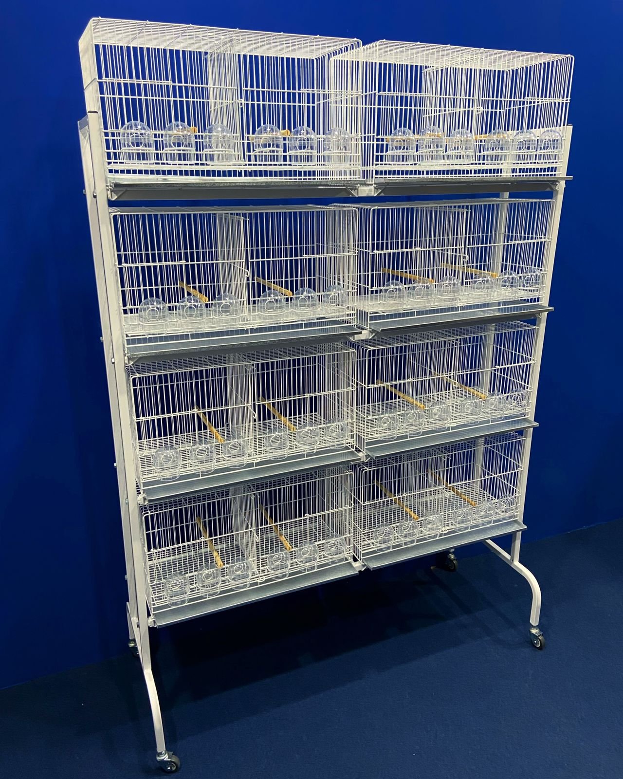212 – CONJUNTO 8 CRIADEIRAS P/ CANÁRIO (6 COMEDORES) + ESTANTE COM RODAS