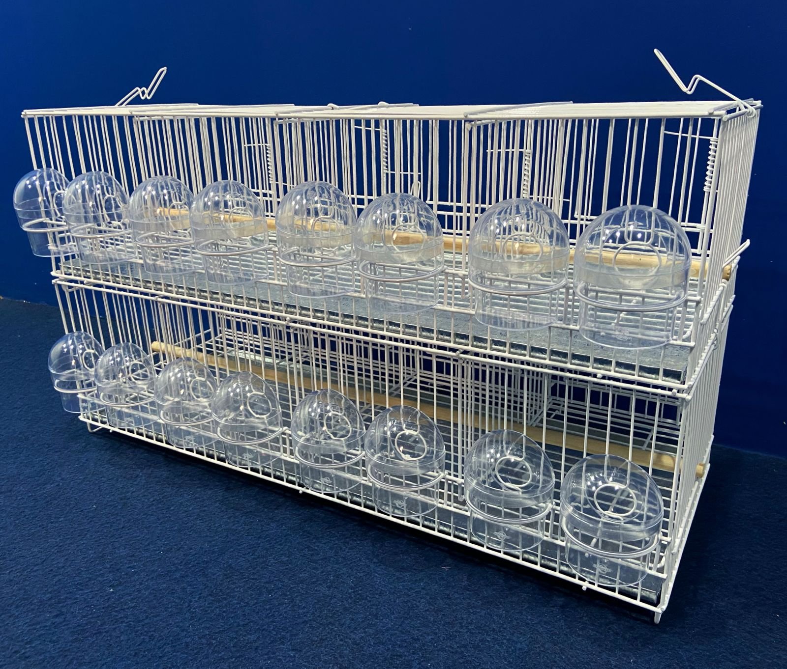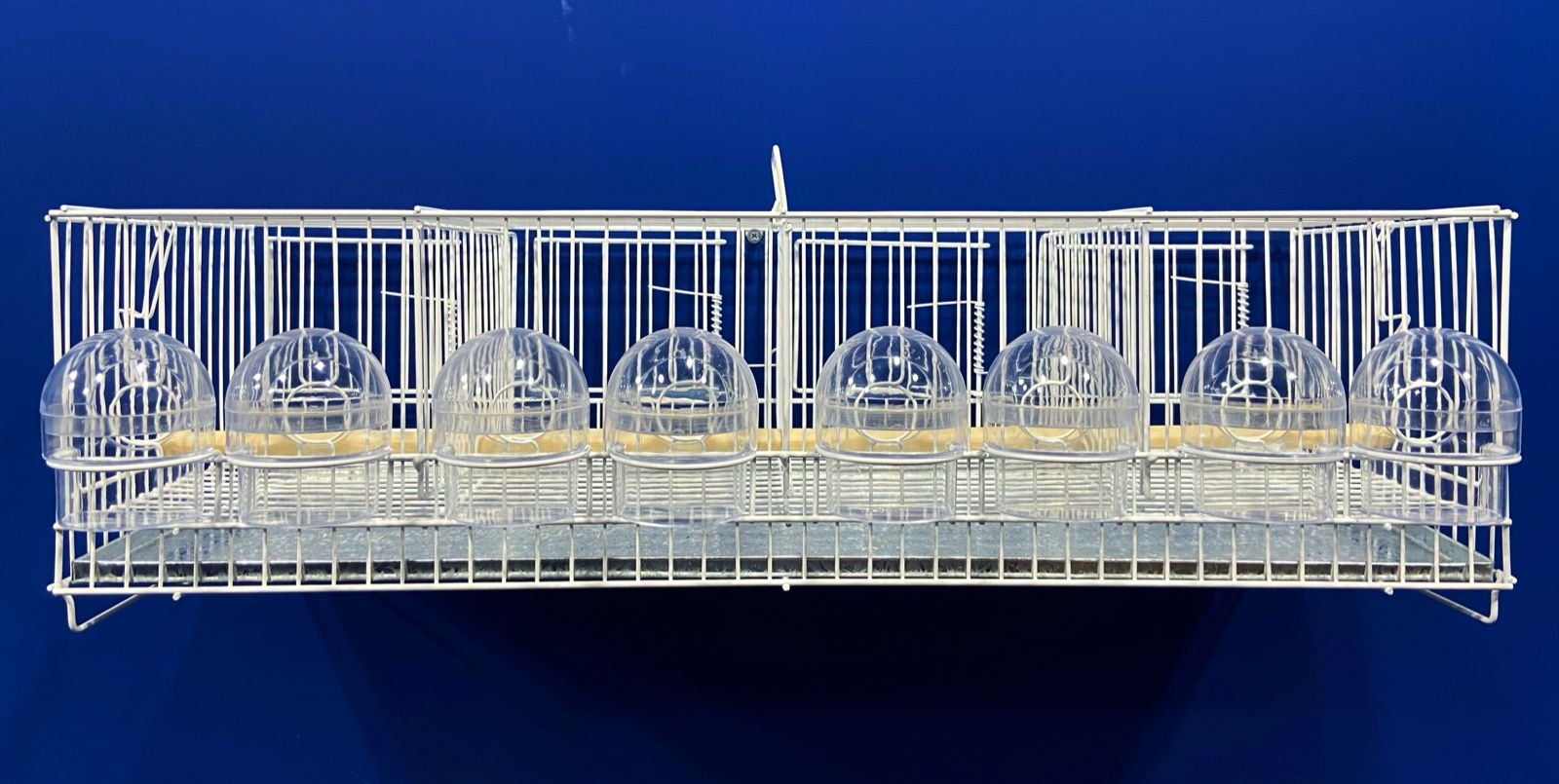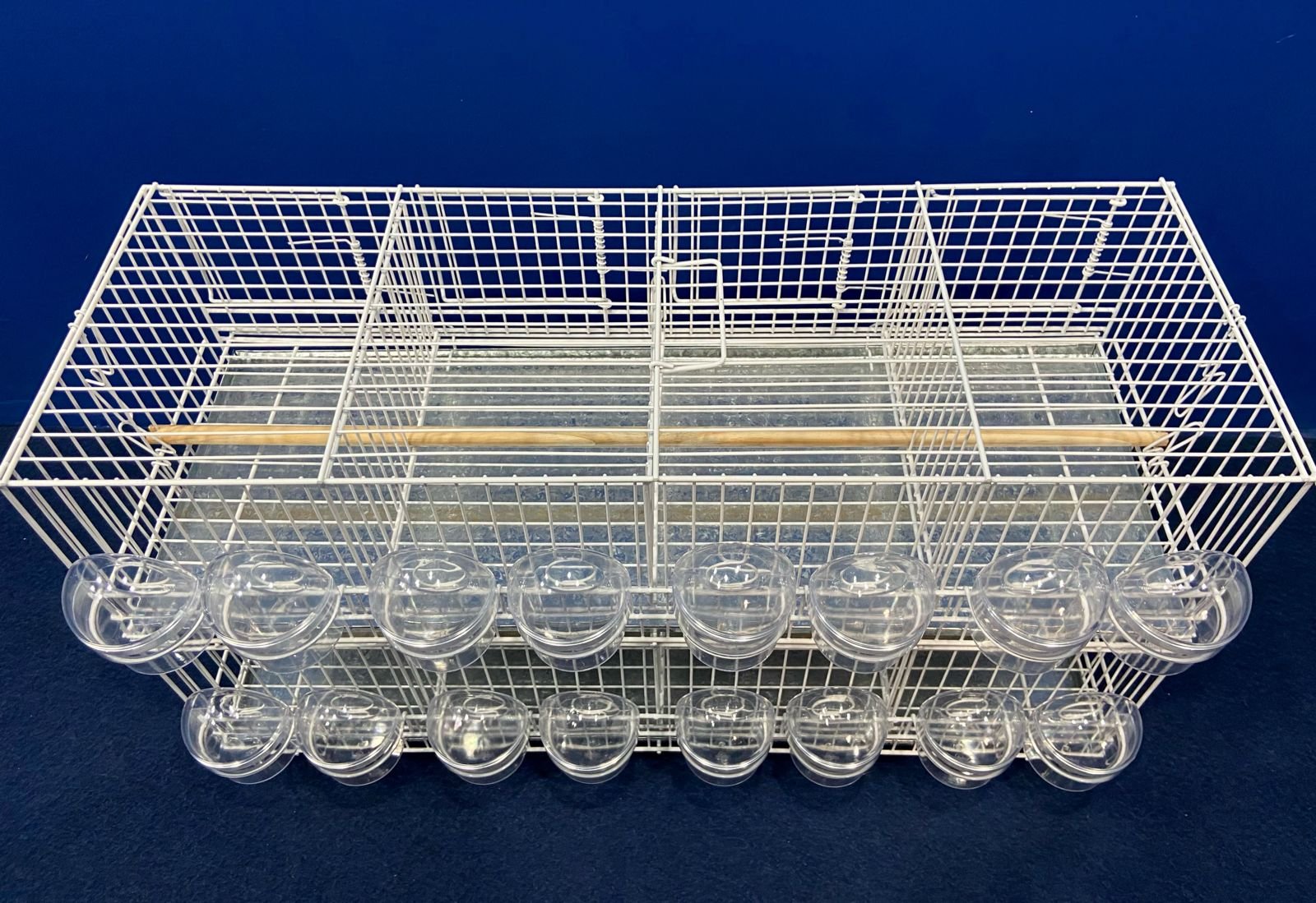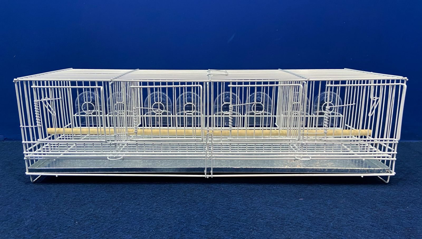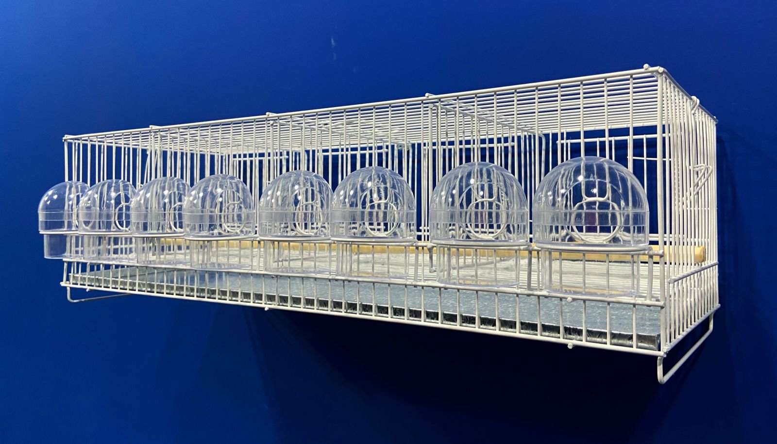 1 poleiro de madeira horizontal (diâmetro 12 mm), 8 comedores 1/2 lua transparentes, 1 grade de fundo e 1 chapa de fundo removível.