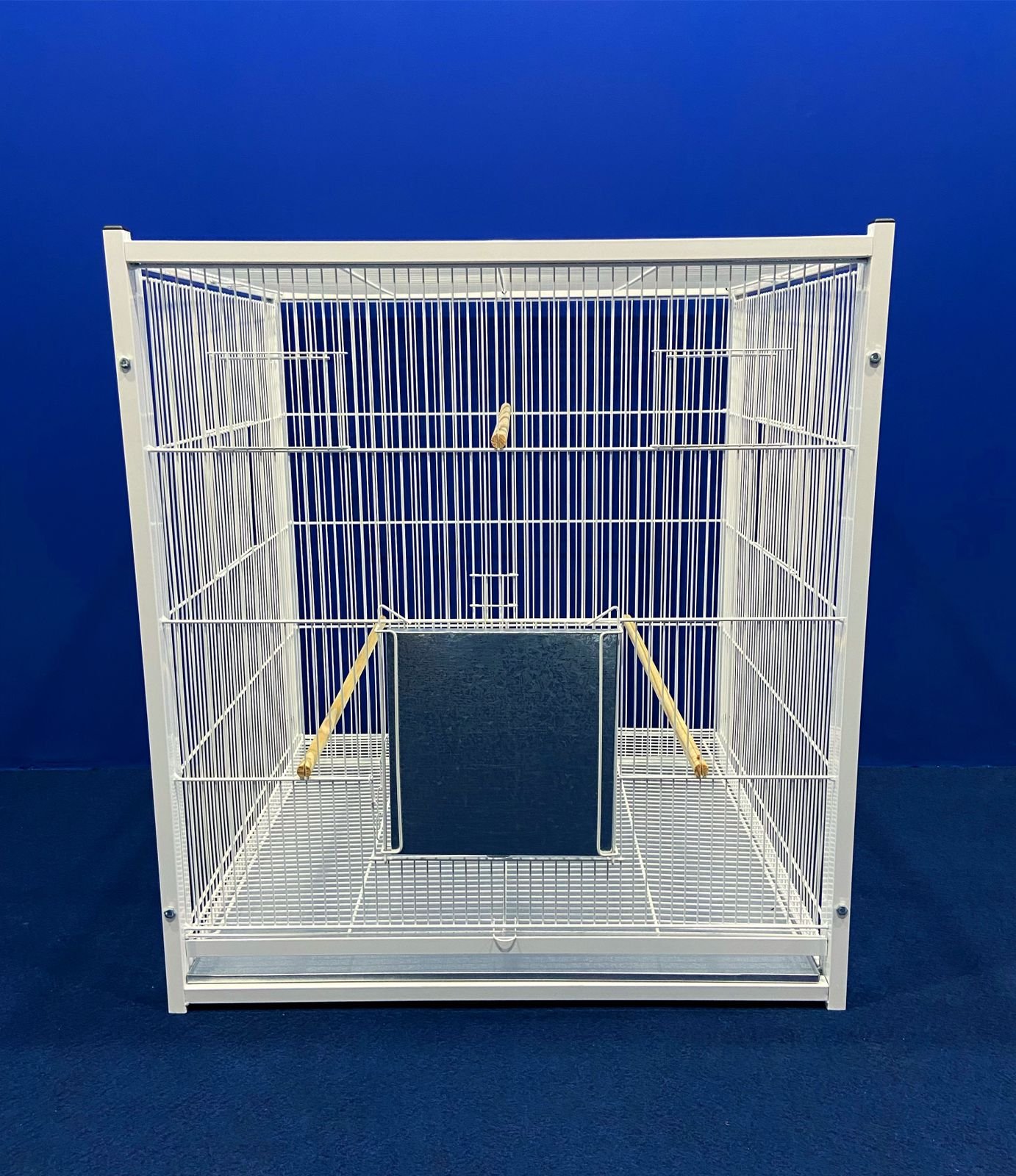 3 poleiros de madeira 16mm + 1 poleiro para a porta, 1 chapa de fundo, 1 chapinha p/ a porta, e 1 grade de fundo removível.