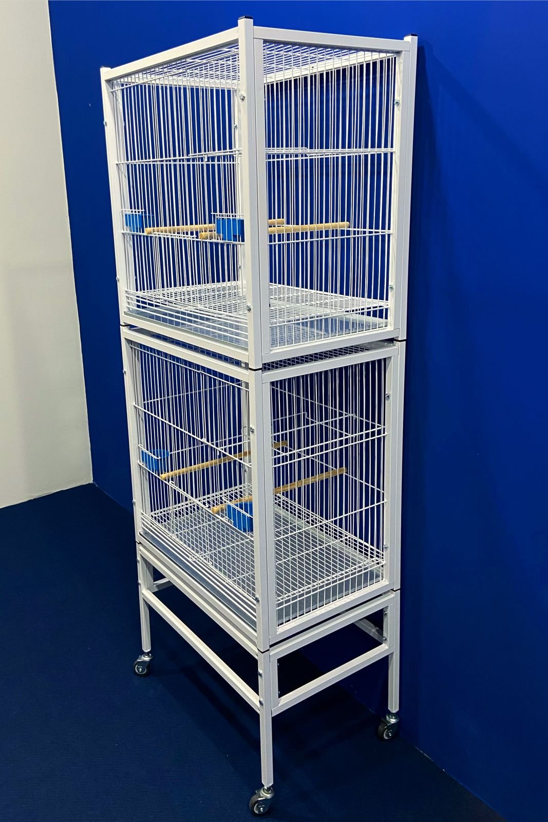 Altura total com 2 gaiolas + suporte com rodas (62 cm): 191 cm