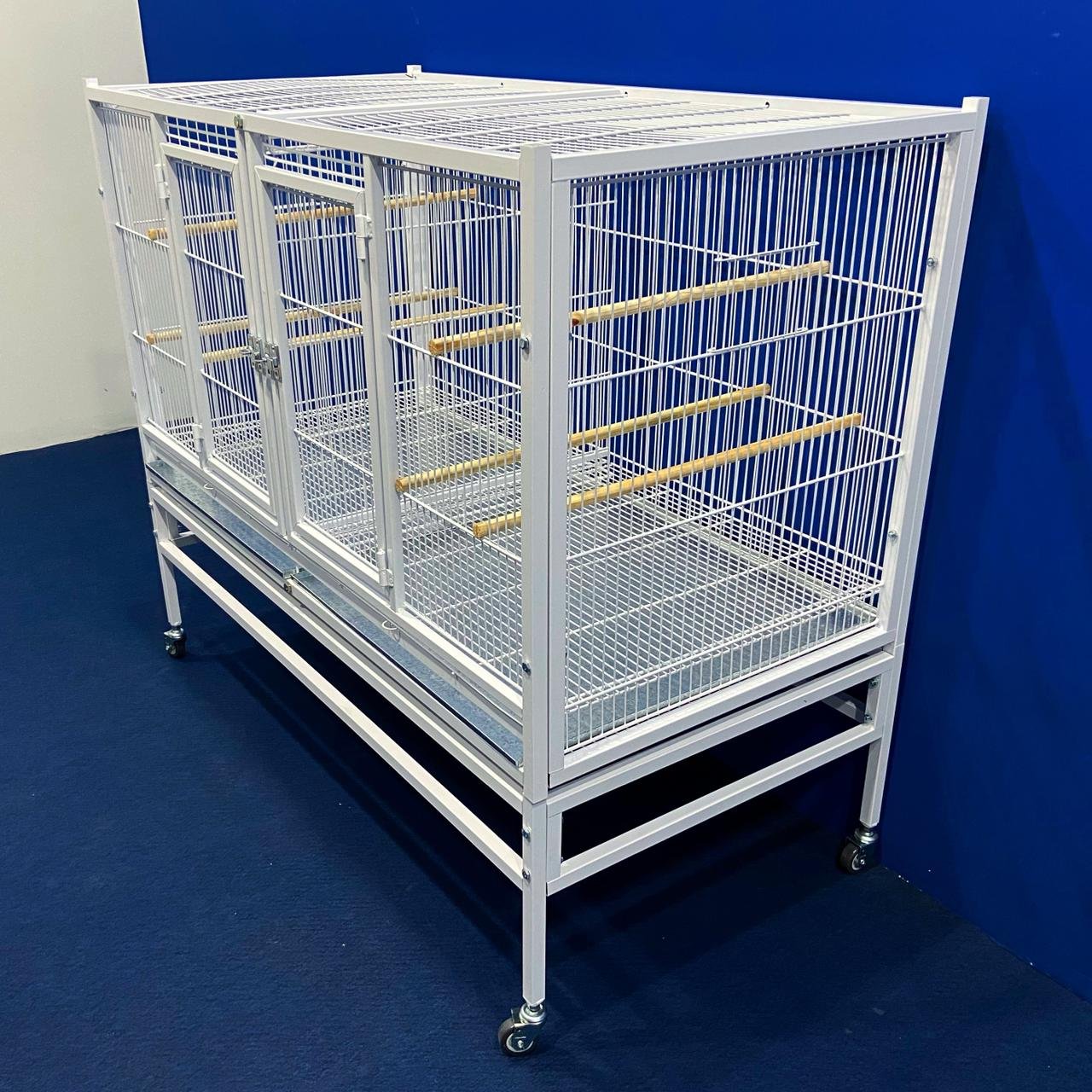 6 poleiros de madeira 16mm, 1 grade divisória, 2 chapas de fundo e 2 grades de fundo removíveis.